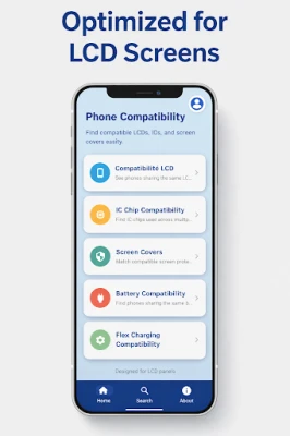 مع LCD COMPATIBLE، أصبحت عملية البحث عن القطعة المناسبة في غاية السهولة. يمكنك التصفية بذكاء حسب ماركة الهاتف وطرازه، لتصل إلى نتائج توافق دقيقة وموثوقة خلال لحظات. سواء كنت تبحث عن شاشة كريستال سائل، شريحة IC، كابل مرن، بطارية، أو حتى غطاء خلفي، فإن التطبيق يوفر لك التحقق الفوري من التوافق دون عناء. يعتمد LCD COMPATIBLE على قاعدة بيانات واسعة النطاق تُحدّث باستمرار لتشمل أحدث موديلات الهواتف، مما يضمن لك الوصول دائمًا إلى معلومات حديثة وشاملة. واجهته البديهية والذكية مصممة خصيصًا للفنيين المشغولين، لتوفير تجربة استخدام سريعة وفعالة.