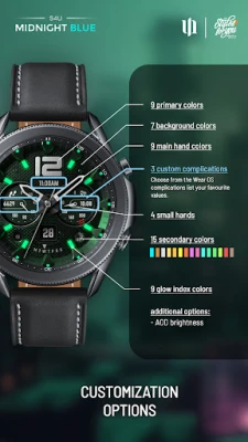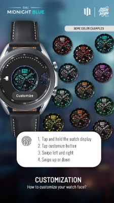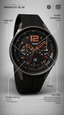 تتفوق S4U Midnight Blue في تقديم خيارات تخصيص لا مثيل لها، مما يتيح لك التحكم الكامل في مظهرها. اختر من بين مجموعة واسعة من الألوان الأساسية والثانوية، بالإضافة إلى خلفيات متنوعة وتوهج عقارب قابل للتعديل، لتصمم واجهة تتناسب مع كل مزاج ومناسبة. لا تتوقف التخصيصات عند الجماليات فحسب؛ بل تشمل أيضًا ثلاث تعقيدات قابلة للتحرير لعرض البيانات الأكثر أهمية بالنسبة لك مثل معدل ضربات القلب، وخطواتك اليومية، وحالة بطارية الساعة. كما تتوفر خمسة اختصارات قابلة للتعديل للوصول السريع إلى تطبيقاتك المفضلة مباشرة من معصمك.