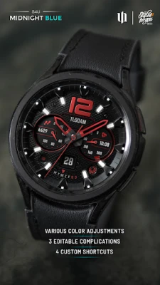 S4U Midnight Blue - واجهة ساعة تناظرية كلاسيكية واقعية لساعات Wear OS 5+ الذكية. تتميز بخيارات تخصيص متعددة، ألوان متنوعة ومضاعفات قابلة للتعديل لتعزيز تجربتك البصرية.