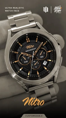 ارتقِ بتجربة Wear OS لديك إلى مستوى جديد مع S4U Nitro. استمتع بواجهة ساعة كلاسيكية واقعية تجمع الأناقة بالوظائف. اختر من بين الكثير من خيارات التخصيص وأضف مضاعفتين مخصصتين لتناسب أسلوبك تمامًا.