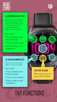 لتعزيز تجربتك اليومية، تتضمن S4U R3D TWO ميزة Always-On Display (AOD) المبتكرة، والتي تضمن عرضًا مستمرًا للوقت بتصميم أنيق وخلفية سوداء نقية تتكيف تلقائيًا مع ألوان المينا الأساسي، مما يحافظ على الأناقة حتى في وضع السكون. ولراحة إضافية، يمكن الوصول إلى تفاصيل البطارية بلمسة بسيطة على مؤشر البطارية مباشرة من واجهة الساعة. من إبداع فريق s4u-watches.com، تعد S4U R3D TWO انعكاسًا للالتزام بتقديم واجهات ساعات مبتكرة وعملية، مع دعوة لاستكشاف المزيد من إبداعاتهم التي تثري تجربة Wear OS.