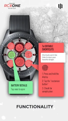 "S4U RC ONE Winter watch face" هو وجه ساعة Wear OS أنيق وواقعي للغاية، مستوحى من الكرونوغرافات الكلاسيكية. يتميز هذا الإصدار الأبيض الفاخر بتصميم ثلاثي الأبعاد استثنائي، ليمنح ساعتك الذكية مظهرًا فريدًا ومميزًا.