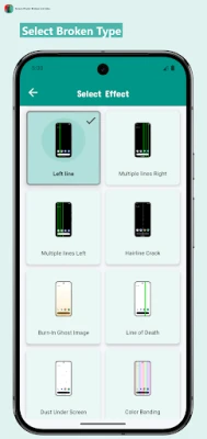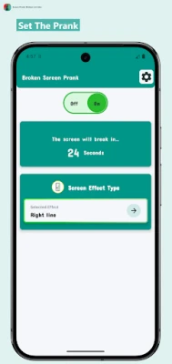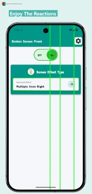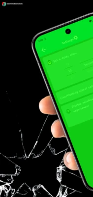 يمنحك التطبيق سيطرة كاملة على نوع "الضرر" الذي ترغب في عرضه. يمكنك الاختيار من بين مجموعة واسعة من أنماط الشاشات المكسورة، بما في ذلك الشقوق الدقيقة التي تتخلل الشاشة أو الخطوط الخضراء المتوهجة التي توحي بوجود عطل فني كبير. وليس هذا فحسب، بل يمكنك تحديد مكان ظهور هذه التأثيرات بدقة، سواء في منتصف الشاشة، على الأطراف، أو في أي من الزوايا. ولإضفاء لمسة المفاجأة المثالية، يتيح لك التطبيق ضبط مؤقت زمني، لضمان ظهور "الخلل" في اللحظة الحاسمة التي تحدث فيها أقل توقع. كل هذه الإعدادات سهلة للغاية بفضل واجهة المستخدم البديهية والمصممة خصيصًا لتناسب الجميع.